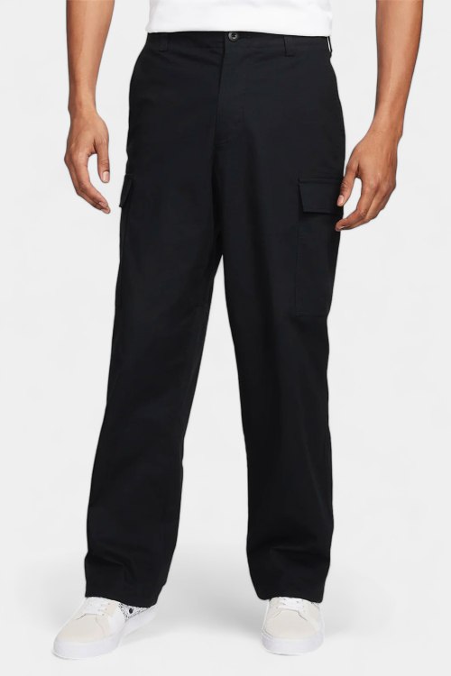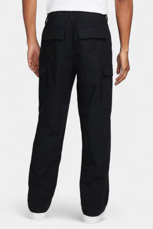 Детали: Мужские черные хлопковые брюки-карго от Nike (Найк). Пояс с петлями для ремня, боковые карманы, накладные карманы-карго, прямой крой, полная длина