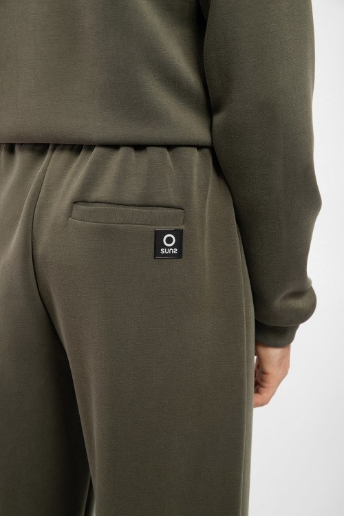 Мужские спортивные брюки цвета хаки от Suns Boards (Санс Боадс). Классическая длина, эластичная резинка на поясе, прямой силуэт, прорезные карманы, патч-лого.