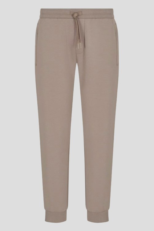 Детали: Мужские бежевые хлопковые спортивные брюки от Armani Exchange (Армани Эксчендж). Эластичный пояс на завязках, боковые карманы, трикотажные манжеты, полная длина