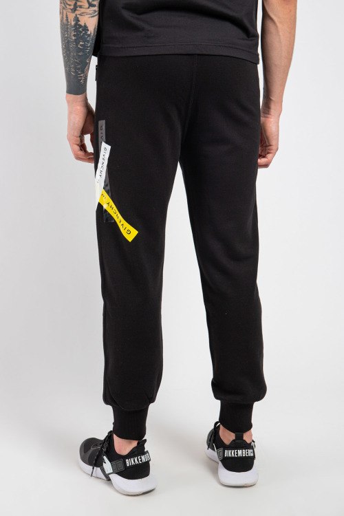 Детали: Мужские черные спортивные брюки из хлопка от Givenchy (Живанши). Классическая длина, эластичная резинка на поясе, боковые карманы на молнии,принт с логотипом бренда, трикотажная резинка на манжетах