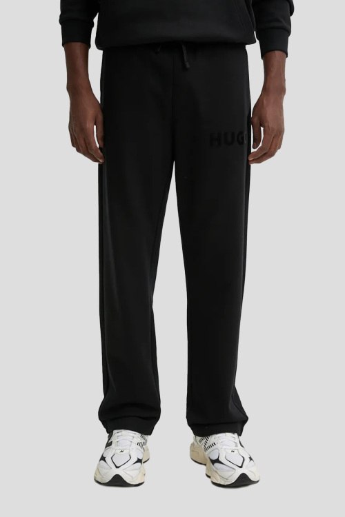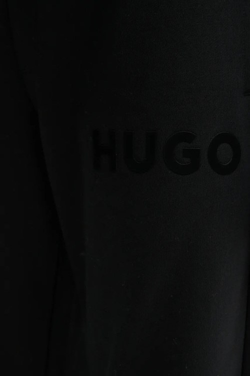 Детали: Мужские черные хлопковые спортивные брюки Dumrulo от Hugo by Hugo Boss (Хуго бай Хуго Босс). Эластичный пояс на завязках, принт логотипа, боковые карманы, низ без манжетов, полная длина