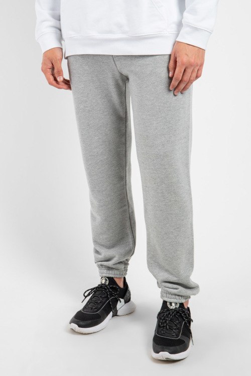 Мужские серые спортивные брюки из хлопка от Off-White (Офф-Вайт). Классическая длина, трикотажная резинка на поясе с кулиской, боковые карманы.