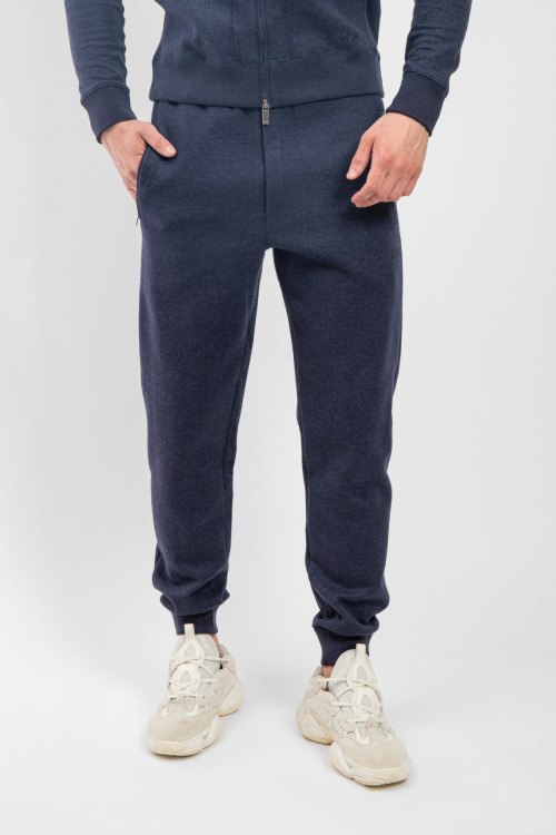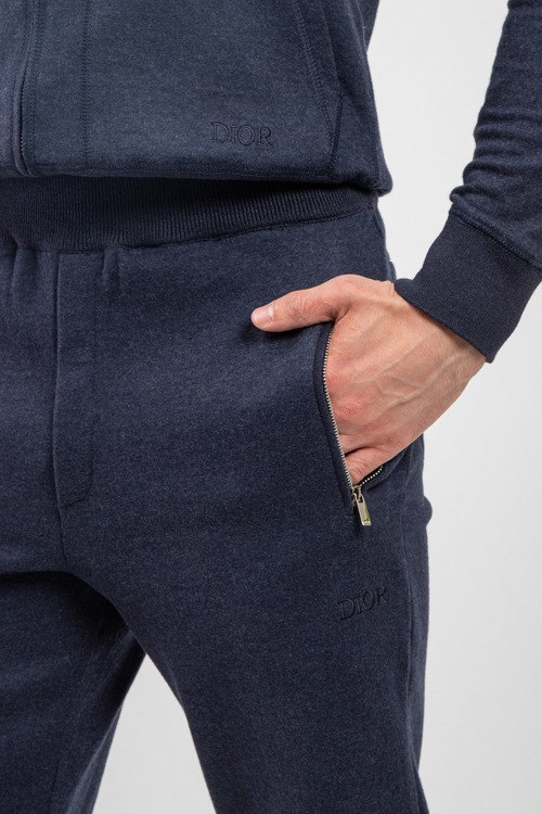 Мужские темно-синие хлопковые спортивные брюки от Christian Dior (Кристиан Диор). Эластичный пояс, боковые и задние карманы, трикотажные манжеты, полная длина. Вы можете дополнить свой образ темно-синей хлопковой спортивной кофтой от Christian Dior.