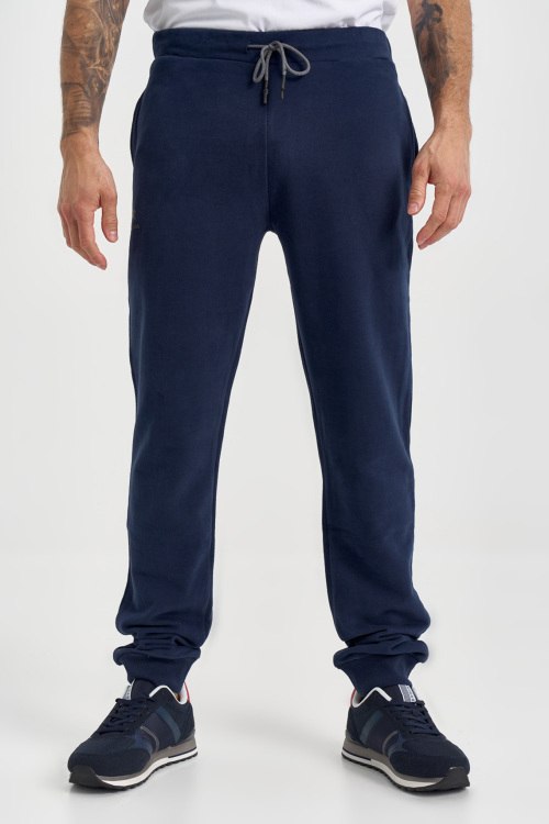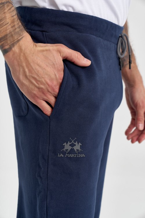 Детали: Мужские темно-синие хлопковые спортивные брюки от La Martina (Ла Мартина). Эластичный пояс на завязках, боковые карманы, трикотажные манжеты, полная длина. Параметры модели: 103 см - 87 см - 99 см. Рост - 182 см. Размер на фото - L