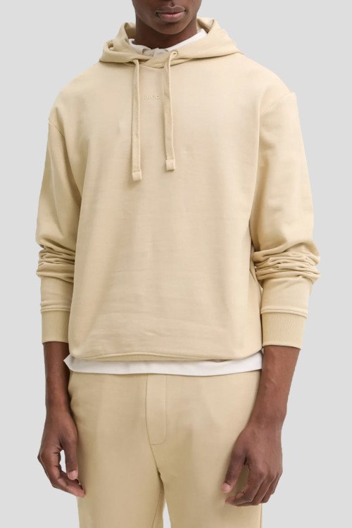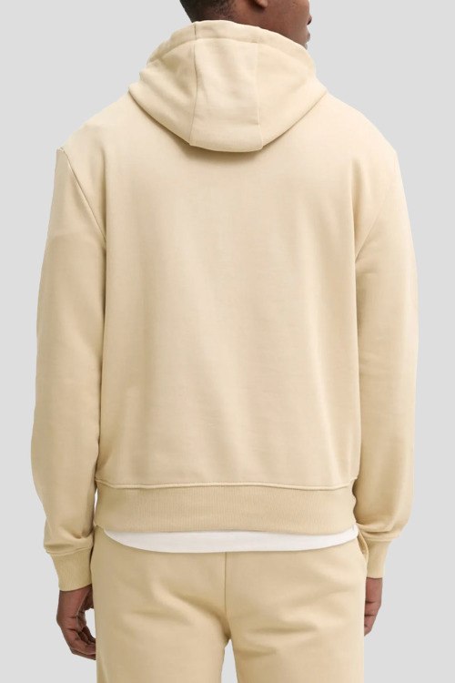 Детали: Мужской бежевый хлопковый спортивный костюм Dapodayote от Hugo by Hugo Boss (Хуго бай Хуго Босс). Худи: капюшон на завязках, логотип на груди, классическая длина, трикотажные манжеты и нижний край. Брюки: эластичный пояс, боковые карманы, трикотажные манжеты, полная длина