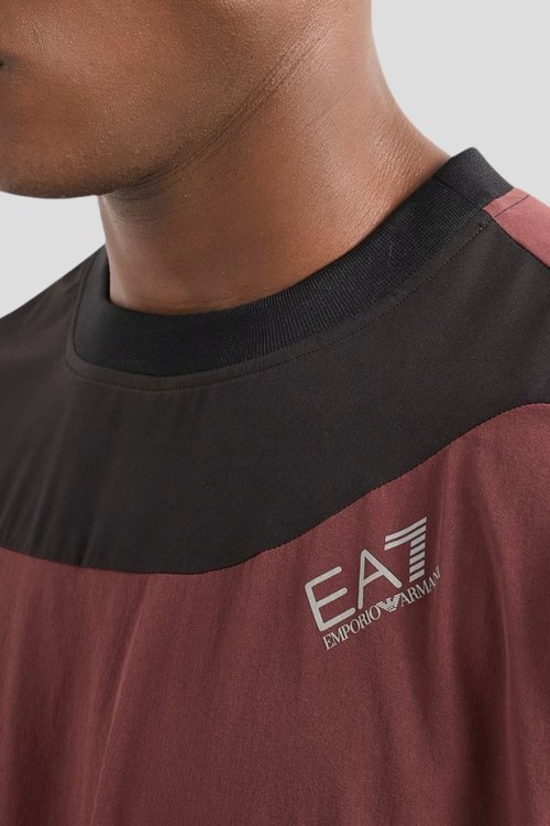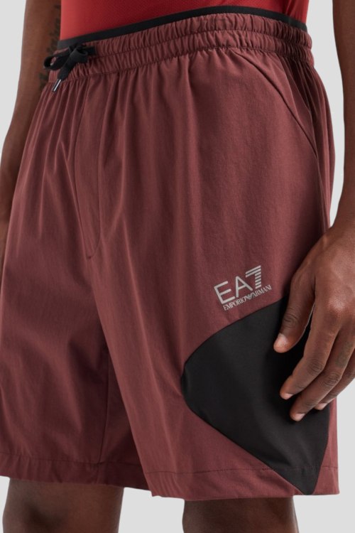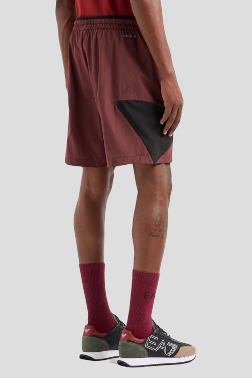 Детали: Мужской бордовый спортивный костюм Dynamic Athlete из технической ткани Ventus7 от EA7 Emporio Armani (ЕА7 Эмпорио Армани). Лонгслив: логотип на груди, круглый вырез горловины, классическая длина. Шорты: эластичный пояс, принт с логотипом, длина выше колен