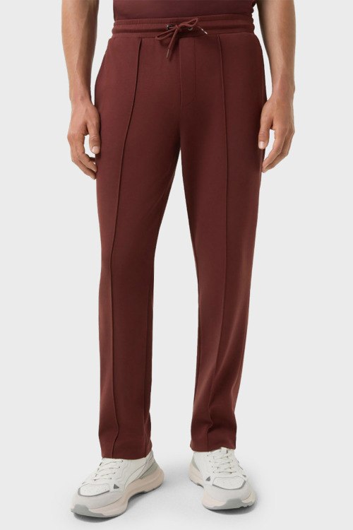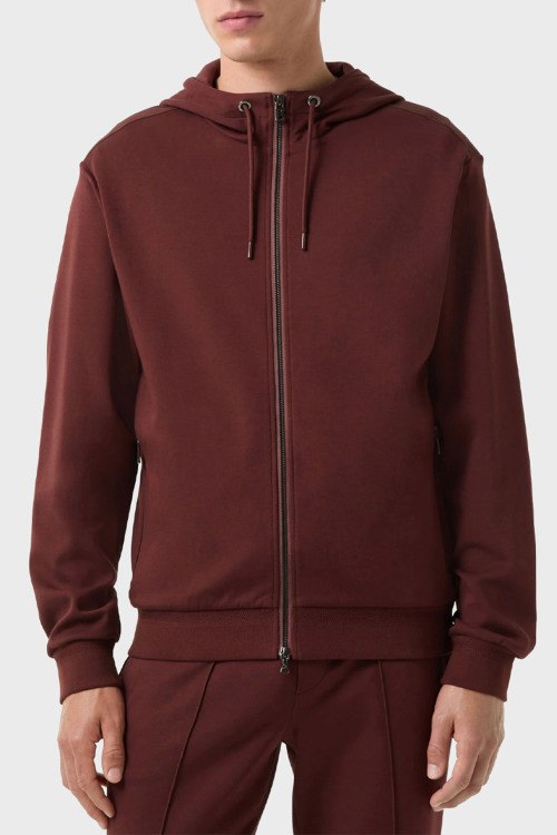 Детали: Мужской бордовый спортивный костюм из хлопка и модала Steven от Bogner (Богнер). Кофта: капюшон на завязках, боковые карманы, застежка-молния, классическая длина, трикотажные манжеты и нижний край. Брюки: эластичный пояс на завязках, боковые карманы, низ без манжетов, полная длина