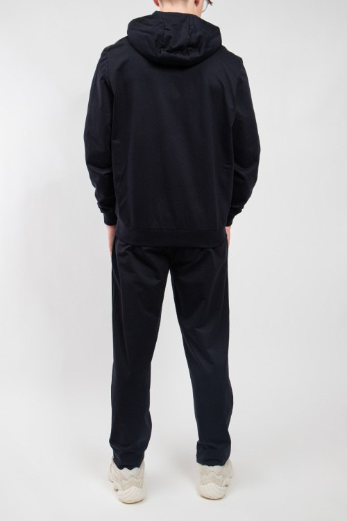 Детали: Мужской черный хлопковый спортивный костюм Devon от Bogner (Богнер). Кофта: вшитый капюшон, боковые карманы, застежка-молния, классическая длина, трикотажные манжеты и нижний край. Брюки: эластичный пояс, боковые карманы, низ без манжетов, полная длина