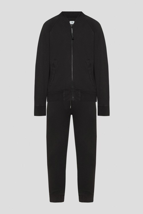 Детали: Мужской черный спортивный костюм из хлопка от C.P. Company (СиПи Компани). Спортивная кофта на молнии, трикотажная резинка на манжетах и по низу изделия, прорезные карманы, рукава-реглан, вышитая декоративная линза. Брюки с тремя карманами, эластичный пояс с кулиской. Замеры: длина рукава: длинный, для размера М - 76 см, обхват груди: для размера М - 112 см, обхват талии: для размера М - 108 см, длина изделия по среднему шву спинки от горловины: для размера М - 62 см. Брюки: обхват пояса: для размера М - 80 см, обхват бедер: для размера М - 106 см, длина штанины: для размера М - 103 см, длина по шаговому шву: для размера М - 75 см