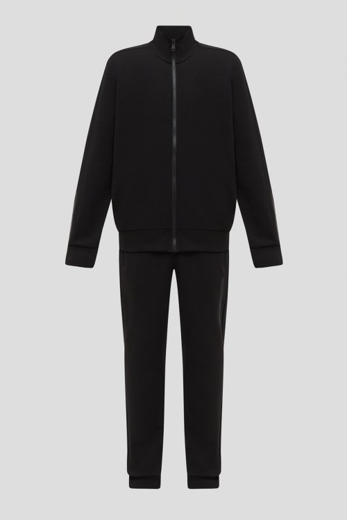 Детали: Мужской черный спортивный костюм из хлопкового микса от Colmar (Колмар). Спортивная кофта на молнии, высокий воротник-стойка, длинные рукава, трикотажная резинка на манжетах и по низу изделия. Брюки с манжетами, эластичная резинка на поясе с кулиской, прорезные карманы. Замеры: длина рукава: длинный, для размера M - 64 см, обхват груди: для размера M - 112 см, обхват талии: для размера M - 104 см, длина изделия по среднему шву спинки от горловины: для размера M - 66 см. Брюки: обхват пояса: для размера M - 74 см, обхват бедер: для размера M - 108 см, длина штанины: для размера M - 104 см, длина по шаговому шву: для размера M - 76,5 см