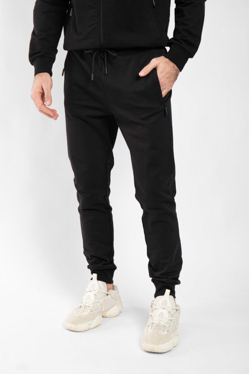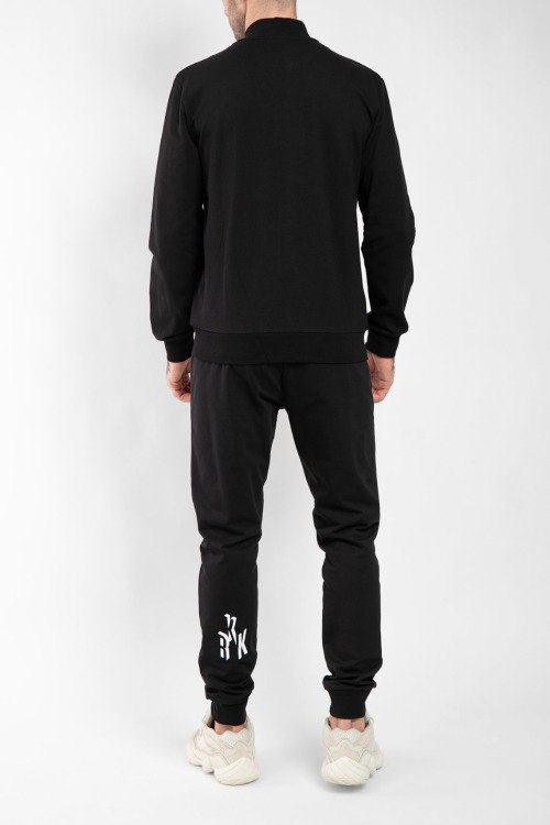 Мужской черный хлопковый спортивный костюм от Bikkembergs (Биккембергс). Кофта: высокий воротник, принт с логотипом, боковые карманы на молнии, застежка-молния, классическая длина, трикотажные манжеты и нижний край. Брюки: эластичный пояс на завязках, принт с логотипом, боковые карманы, трикотажные манжеты, полная длина.