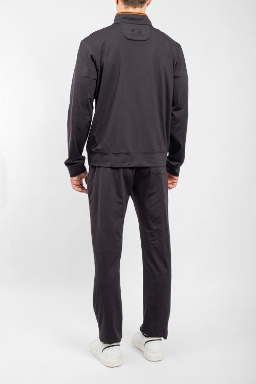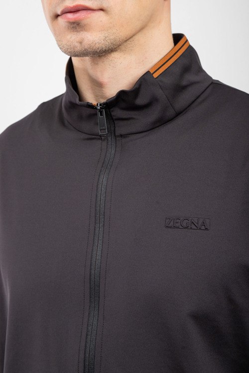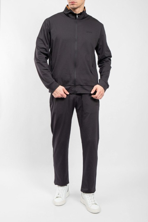 Детали: Мужской черный спортивный костюм от Ermenegildo Zegna (Эрменеджильдо Зенья). Кофта: высокий воротник, логотип на груди, боковые карманы на молнии, застежка-молния, классическая длина. Брюки: эластичный пояс на завязках, боковые карманы, низ без манжетов, полная длина
