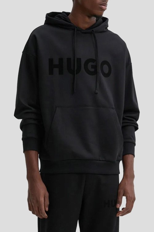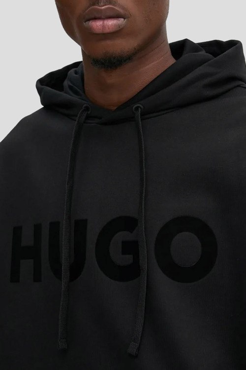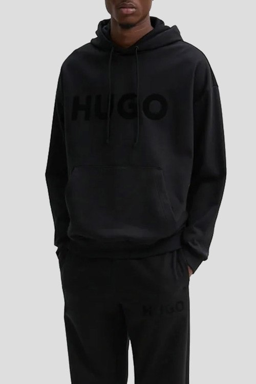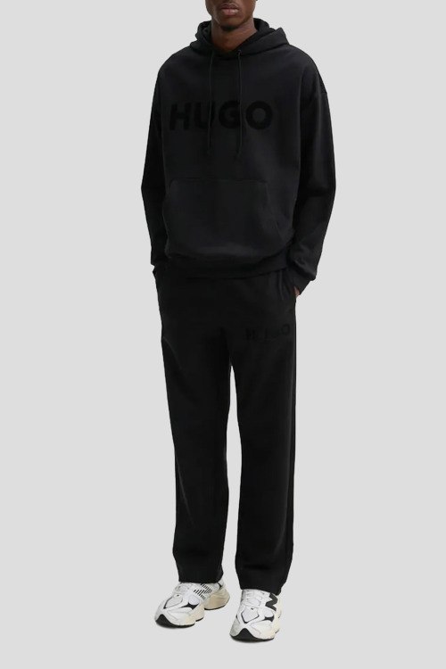 Детали: Мужской черный хлопковый спортивный костюм Ditchle от Hugo Boss (Хуго Босс). Худи: капюшон на завязках, логотип на груди, карман-кенгуру, классическая длина, трикотажные манжеты и нижний край. Брюки: эластичный пояс, вышитый логотип, боковые карманы, низ без манжетов, полная длина