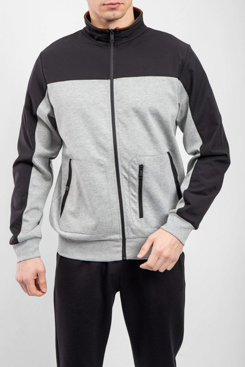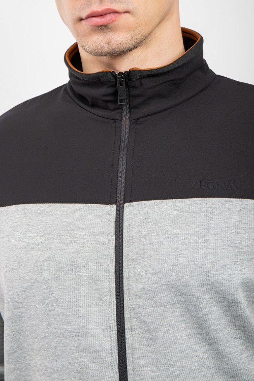 Детали: Мужской черно-серый хлопковый спортивный костюм от Ermenegildo Zegna (Эрменеджильдо Зенья). Кофта: высокий воротник, боковые карманы, застежка-молния, классическая длина, трикотажные манжеты и нижний край. Брюки: эластичный пояс на завязках, боковые карманы, низ без манжетов, полная длина