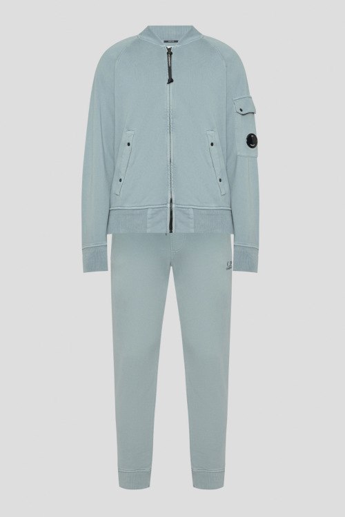 Детали: Мужской голубой спортивный костюм из хлопка от C.P. Company (СиПи Компани). Спортивная кофта на молнии, трикотажная резинка на манжетах и по низу изделия, прорезные карманы, рукава-реглан, вышитая декоративная линза. Брюки с тремя карманами, эластичный пояс с кулиской. Замеры: длина рукава: длинный, для размера М - 76 см, обхват груди: для размера М - 112 см, обхват талии: для размера М - 108 см, длина изделия по среднему шву спинки от горловины: для размера М - 62 см. Брюки: обхват пояса: для размера М - 80 см, обхват бедер: для размера М - 106 см, длина штанины: для размера М - 103 см, длина по шаговому шву: для размера М - 75 см