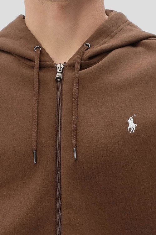 Детали: Мужской коричневый хлопковый спортивный костюм от Polo Ralph Lauren (Поло Ральф Лорен). Кофта: логотип на груди, капюшон на завязках, боковые карманы, застежка-молния, классическая длина, трикотажные манжеты и нижний край. Брюки: эластичный пояс, боковые карманы, трикотажные манжеты, полная длина