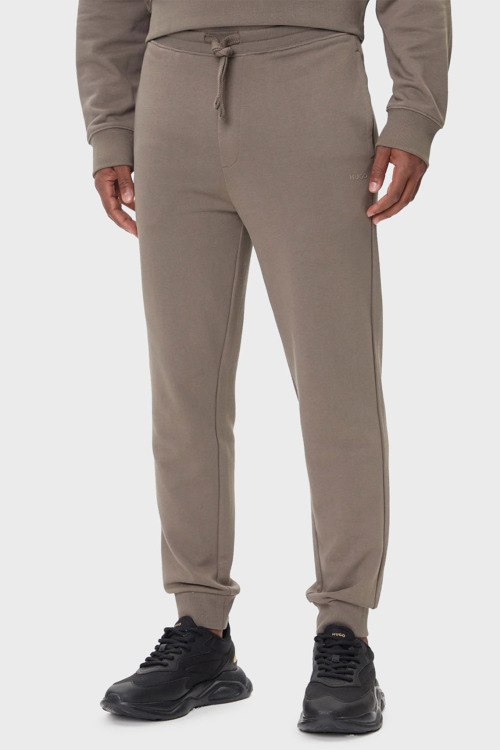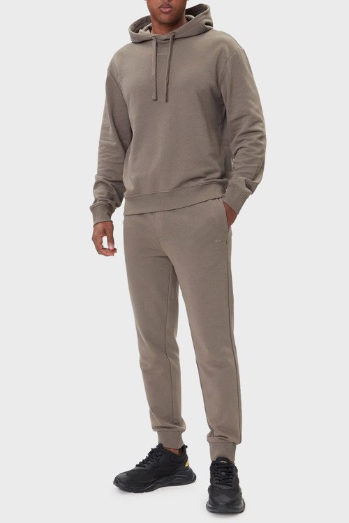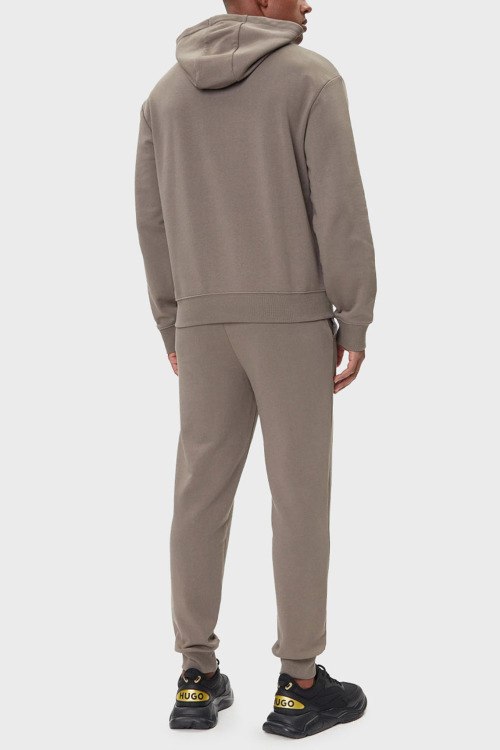 Детали: Мужской хлопковый спортивный костюм цвета тауп Dapodayote от Hugo by Hugo Boss (Хуго бай Хуго Босс). Худи: капюшон на завязках, логотип на груди, классическая длина, трикотажные манжеты и нижний край. Брюки: эластичный пояс, логотип, боковые карманы, трикотажные манжеты, полная длина