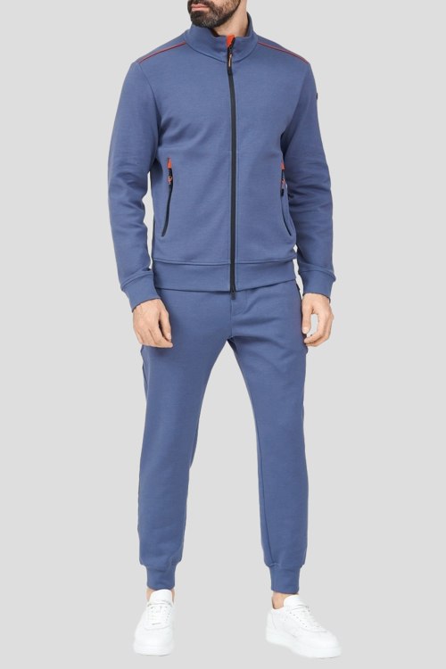 Детали: Мужской синий хлопковый спортивный костюм от Paul & Shark (Пол энд Шарк). Кофта: высокий воротник, боковые карманы на молнии, застежка-молния, классическая длина, трикотажные манжеты и нижний край. Брюки: эластичный пояс, боковые карманы, трикотажные манжеты, полная длина