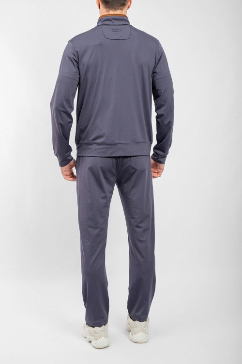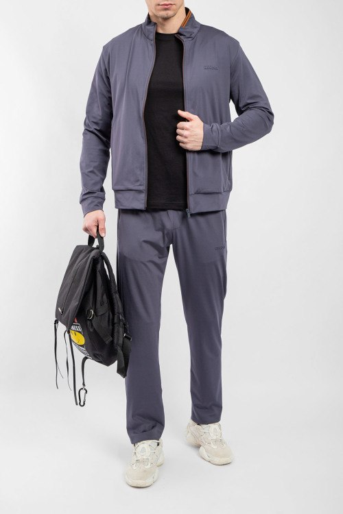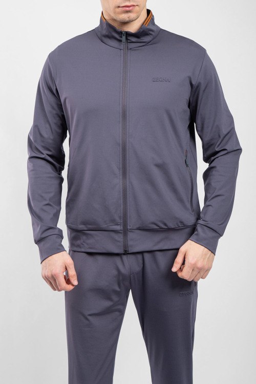 Детали: Мужской темно-серый спортивный костюм от Ermenegildo Zegna (Эрменеджильдо Зенья). Кофта: высокий воротник, логотип на груди, боковые карманы на молнии, застежка-молния, классическая длина. Брюки: эластичный пояс на завязках, боковые карманы, низ без манжетов, полная длина