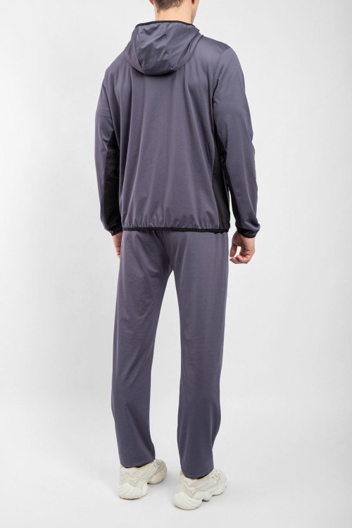 Детали: Мужской темно-серый спортивный костюм от Loro Piana (Лоро Пьяна). Кофта: модель с капюшоном, боковые карманы на молнии, застежка-молния, классическая длина. Брюки: эластичный пояс на завязках, боковые карманы, низ без манжетов, полная длина