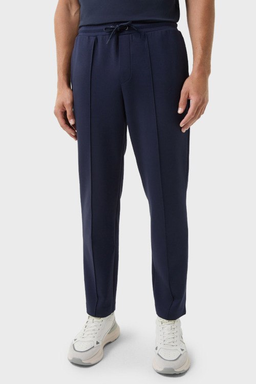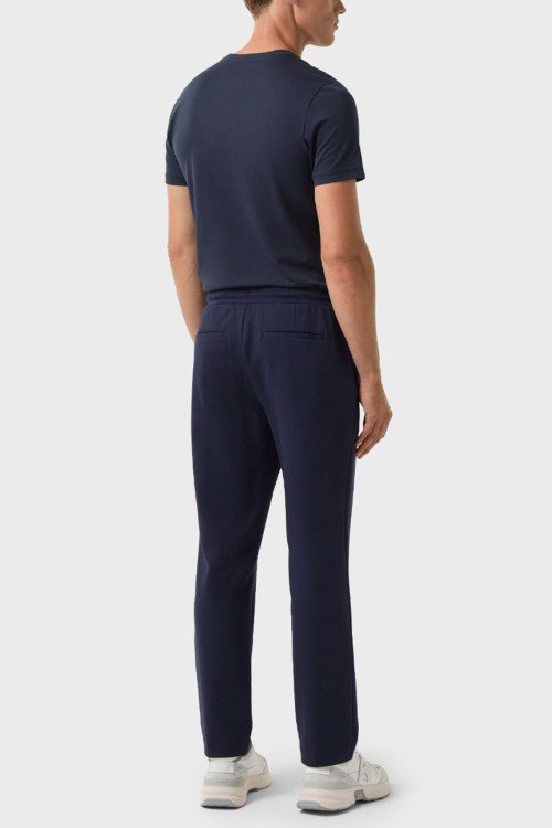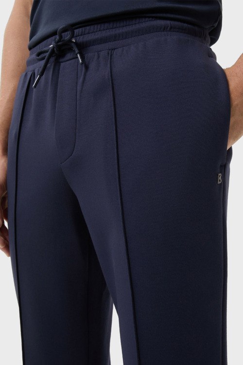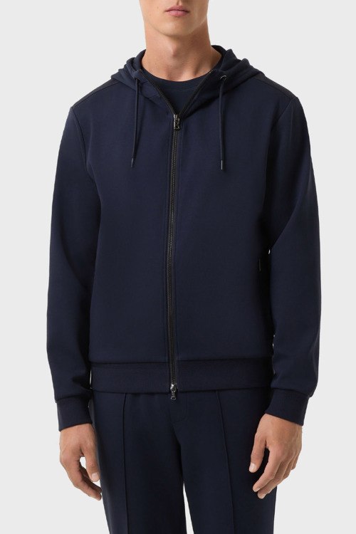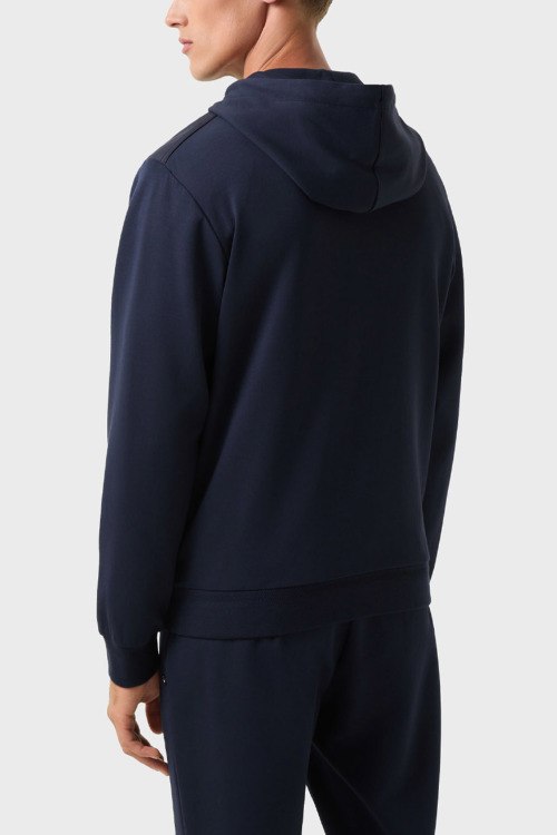 Детали: Мужской темно-синий спортивный костюм из хлопка и модала Steven от Bogner (Богнер). Кофта: капюшон на завязках, боковые карманы, застежка-молния, классическая длина, трикотажные манжеты и нижний край. Брюки: эластичный пояс на завязках, боковые карманы, низ без манжетов, полная длина