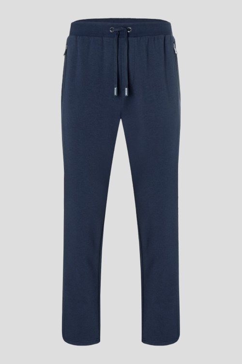Мужской темно-синий спортивный костюм Angus из хлопка и модала от Bogner (Богнер). Спортивная кофта комбинированного дизайна, вшитый капюшон, застежка на молнию, прорезные карманы на молнии, патч-лого. Спортивные брюки с эластичной резинкой на поясе, прорезные карманы на молнии.