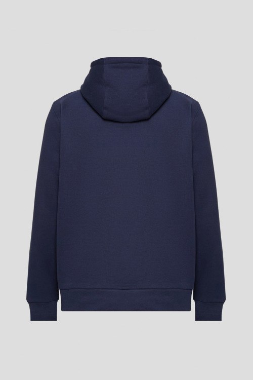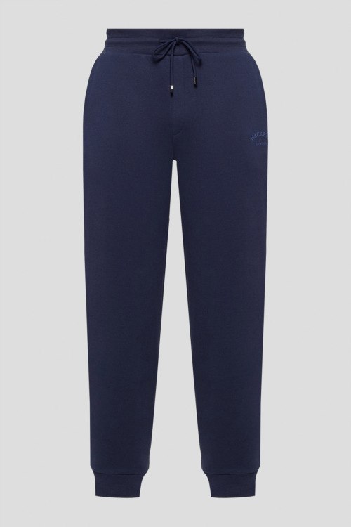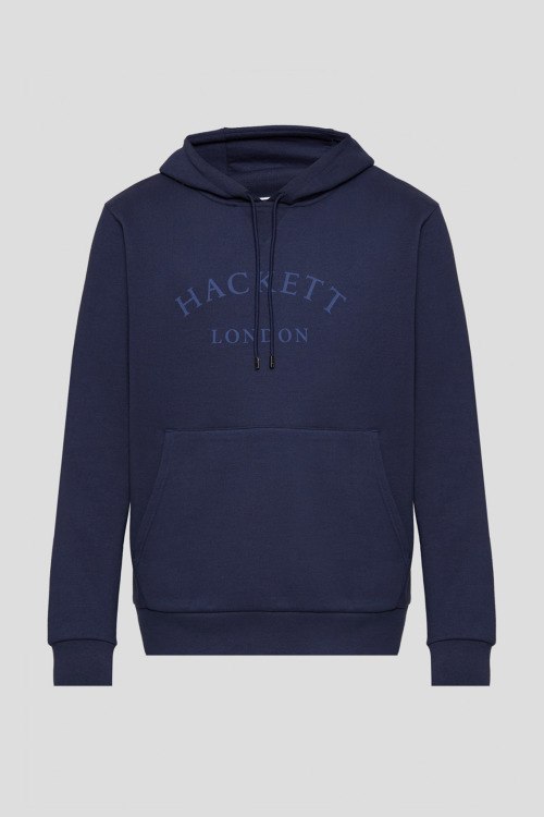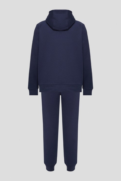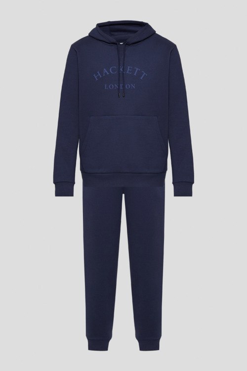 Детали: Мужской темно-синий хлопковый спортивный костюм от Hackett (Хаккетт). Худи: капюшон на завязках, логотип на груди, карман-кенгуру, классическая длина, трикотажные манжеты и нижний край. Длина рукава: длинный, для размера L - 69 см, обхват груди: для размера L - 126 см, обхват талии: для размера L - 126 см, длина изделия по среднему шву спинки от горловины: для размера L - 73 см. Брюки: эластичный пояс на завязках, боковые карманы, логотип, трикотажные манжеты. Обхват пояса: для размера L - 94 см, обхват бедер: для размера L - 114 см, длина штанины: для размера L - 107 см, длина по шаговому шву: для размера L - 77 см