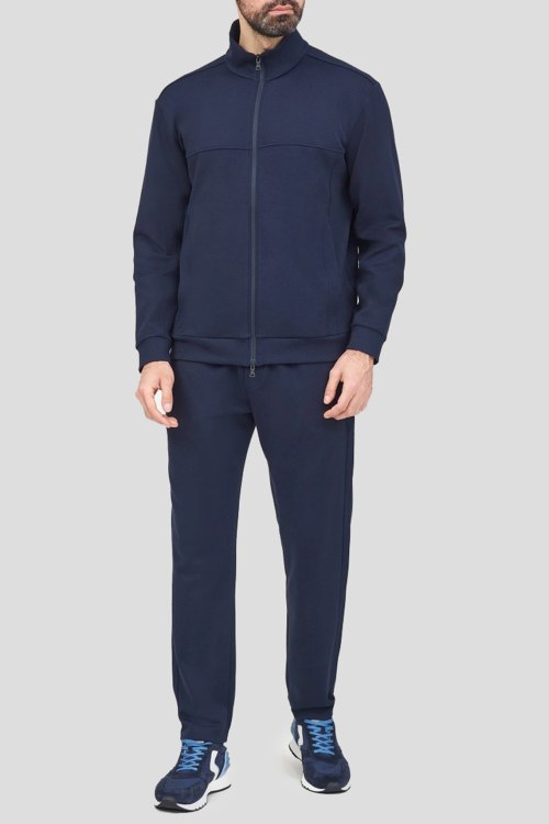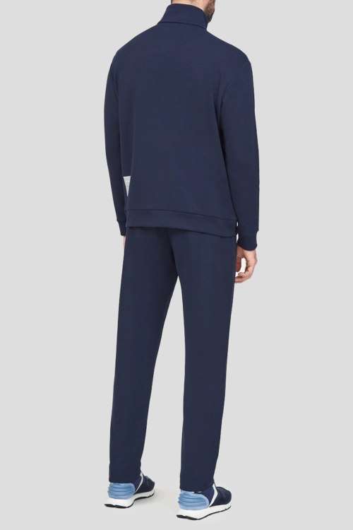 Детали: Мужской темно-синий хлопковый спортивный костюм от Paul & Shark (Пол энд Шарк). Кофта: высокий воротник, боковые карманы, застежка-молния, классическая длина, трикотажные манжеты и нижний край. Брюки: эластичный пояс, боковые карманы, без манжетов, полная длина