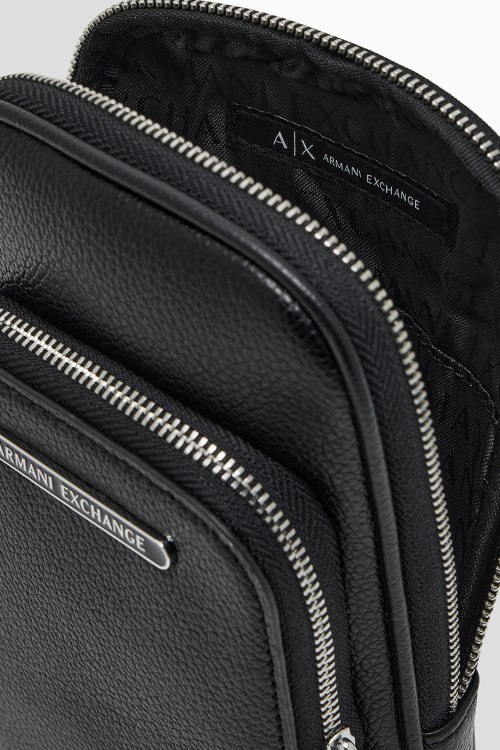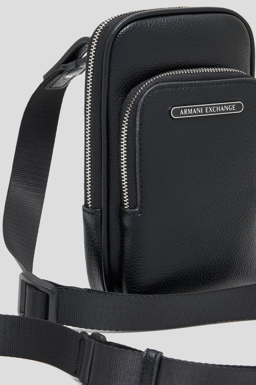 Детали: Мужская черная сумка через плечо из экокожи от Armani Exchange (Армани Эксчендж). Значок с логотипом, внешний карман на молнии, застежка-молния, одно отделение, регулируемый плечевой ремень. Размеры: 11.5 х 18.5 х 1.5 см