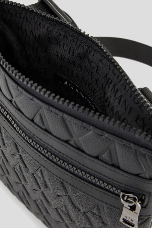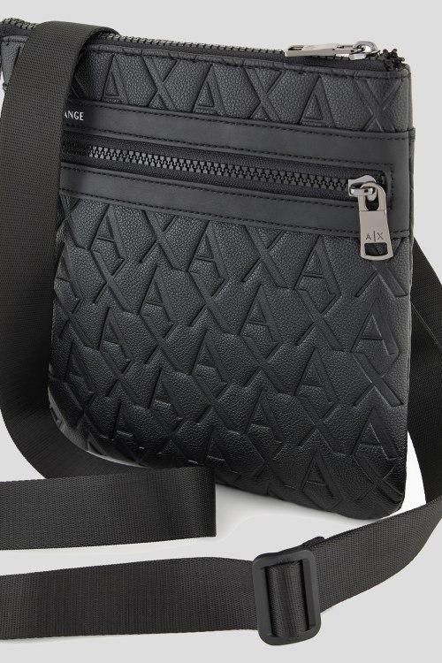 Детали: Мужская черная сумка мессенджер из экокожи от Armani Exchange (Армани Эксчендж). Тиснение с монограммой, принт с логотипом, внешний карман на молнии, застежка-молния, одно отделение, регулируемый плечевой ремень. Размеры: 22 х 21 х 2 см