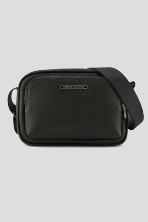 Детали: Мужская черная сумка через плечо из экокожи от Armani Exchange (Армани Эксчендж). Модель из зернистой кожи, нашивка с логотипом, внешний карман на молнии, застежка-молния, одно отделение, регулируемый плечевой ремень. Размеры: 22 x 6 x 17 см
