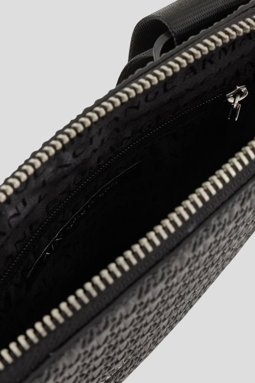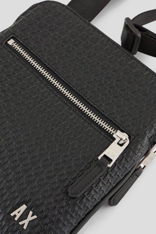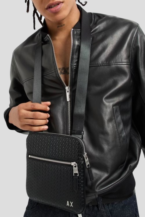 Детали: Мужская черная сумка-мессенджер из экокожи от Armani Exchange (Армани Эксчендж). Дизайн с тиснением, одно отделение, застежка на молнию, внешний карман на молнии, логотип бренда, регулируемый плечевой ремень. Размер: 20 х 22 х 2 см.