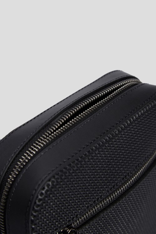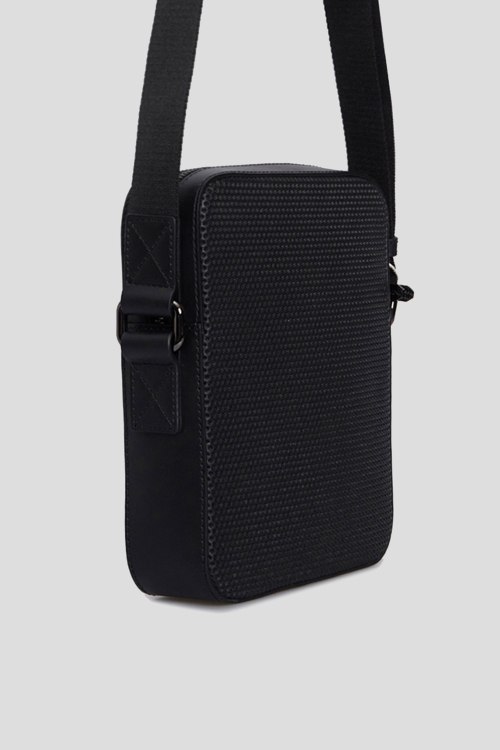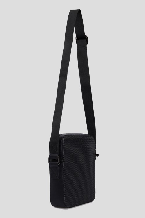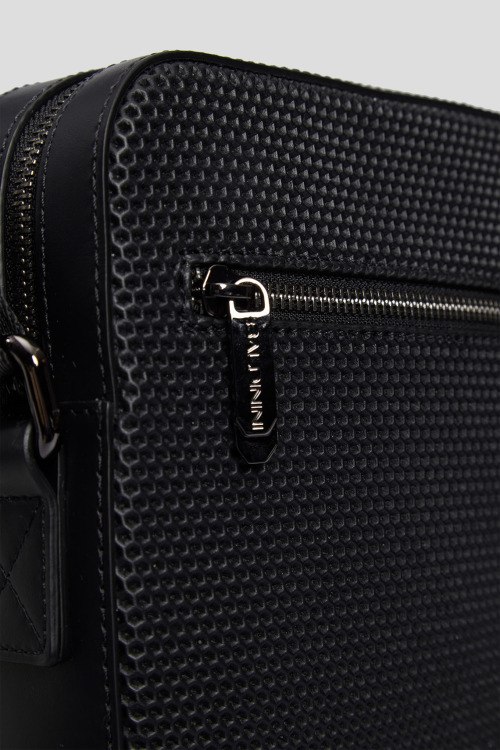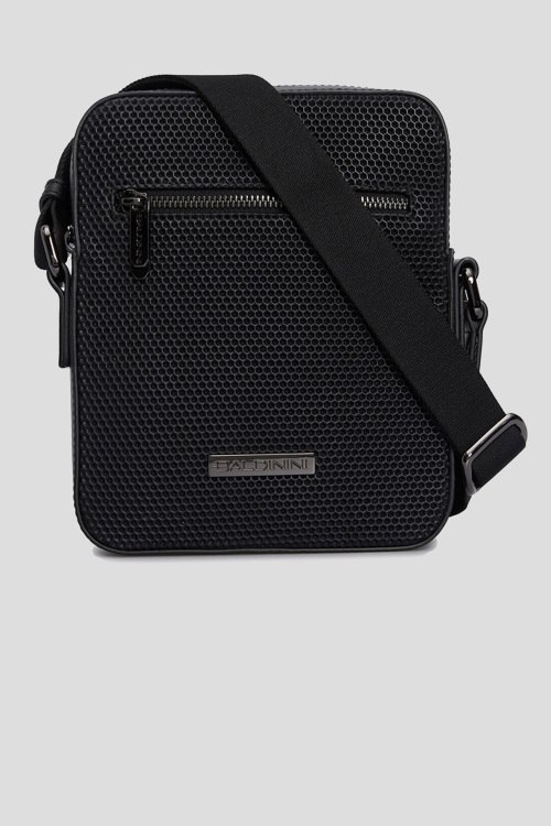 Детали: Мужская черная сумка-мессенджер из текстиля от Baldinini (Балдинини). Одно отделение, застежка на молнию, внешний карман на молнии, перфорированный дизайн, патч-лого, регулируемый плечевой ремень. Размер: 17х22х5 см