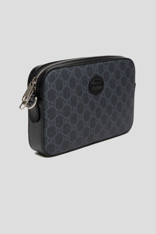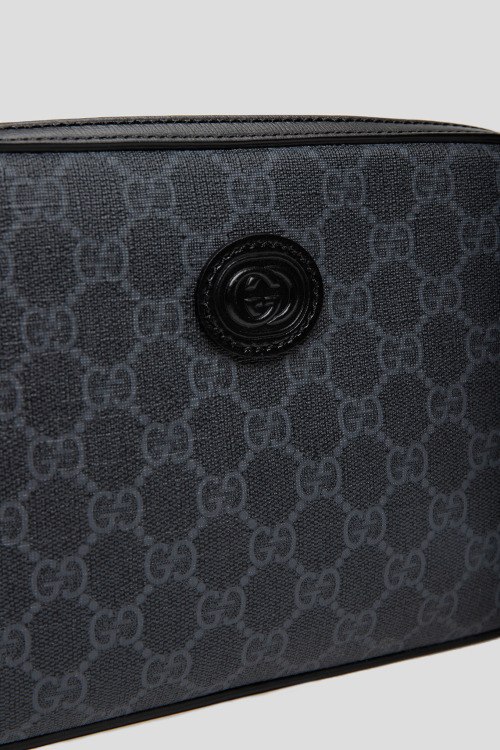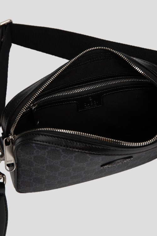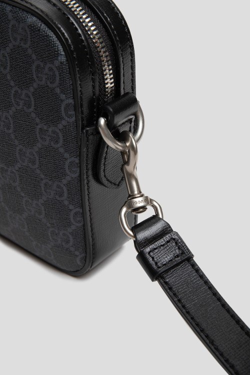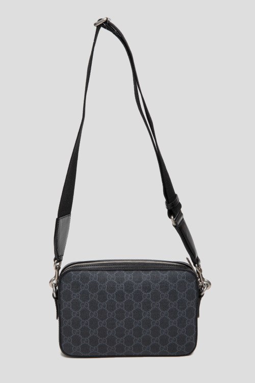 Мужская черная сумка через плечо Ophidia из текстиля и экокожи от Gucci (Гуччи). Дизайн с монограммой, одно отделение, застежка на молнию, патч-лого, внутренний карман на молнии, съемный регулируемый плечевой ремень. Измерения: высота: 16 см; ширина: 23,5 см; глубина: 4 см