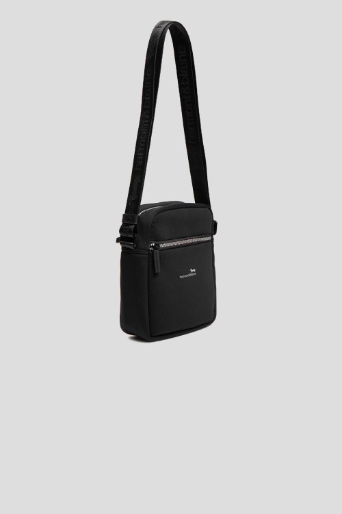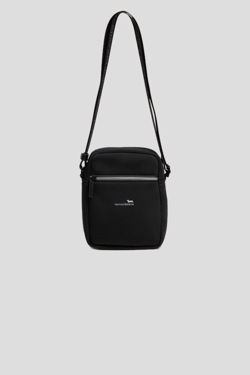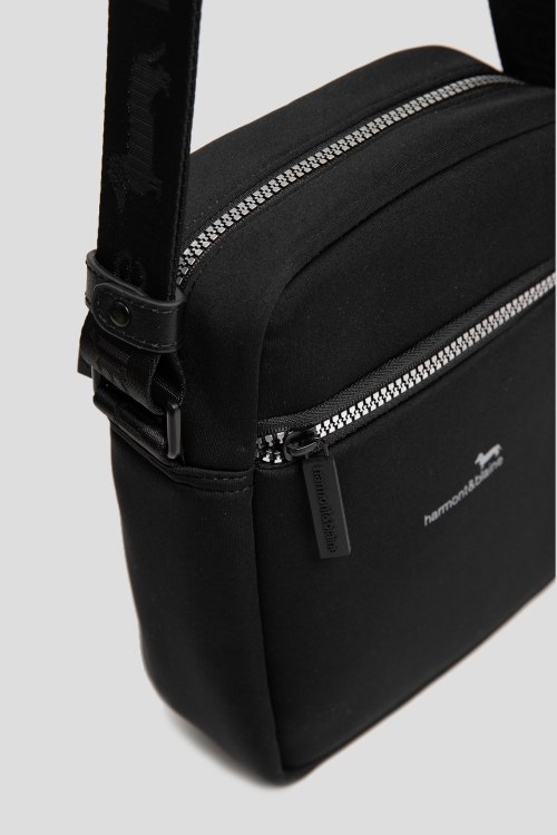 Детали: Мужская черная сумка через плечо из текстиля от Harmont & Blaine (Хармонт энд Блейн). Одно отделение, застежка на молнию, внешний и внутренний карман, патч-лого, одна несъемная регулируемая ручка высотой 50 см. Размер: 18,5х24х9 см