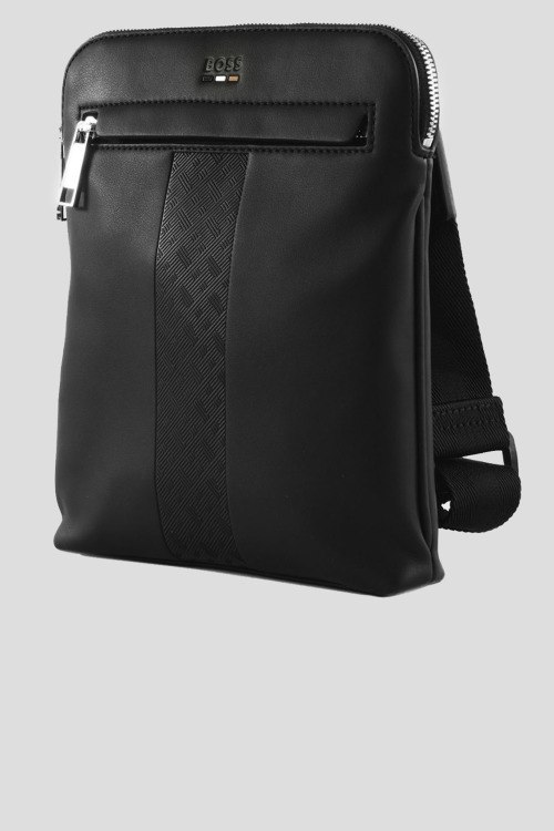 Детали: Мужская черная сумка через плечо из экокожи от Hugo Boss (Хуго Босс). Одно отделение, застежка на молнию, регулируемый плечевой ремень, спереди застежка на молнию, тиснение с логотипом бренда. Размер: высота: 24 см, длина: 20 см, ширина: 3,5 см