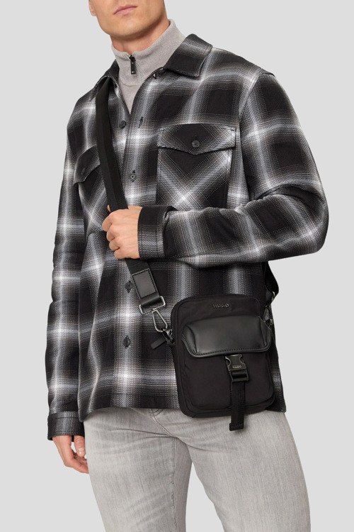 Детали: Мужская черная текстильная сумка мессенджер Ubert от Hugo by Hugo Boss (Хуго бай Хуго Босс). Нашивка с логотипом, накладной карман, застежка-молния, одно отделение, регулируемый плечевой ремень. Размеры: 16 x 20.5 x 5 см