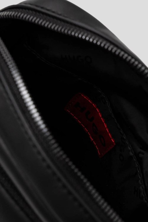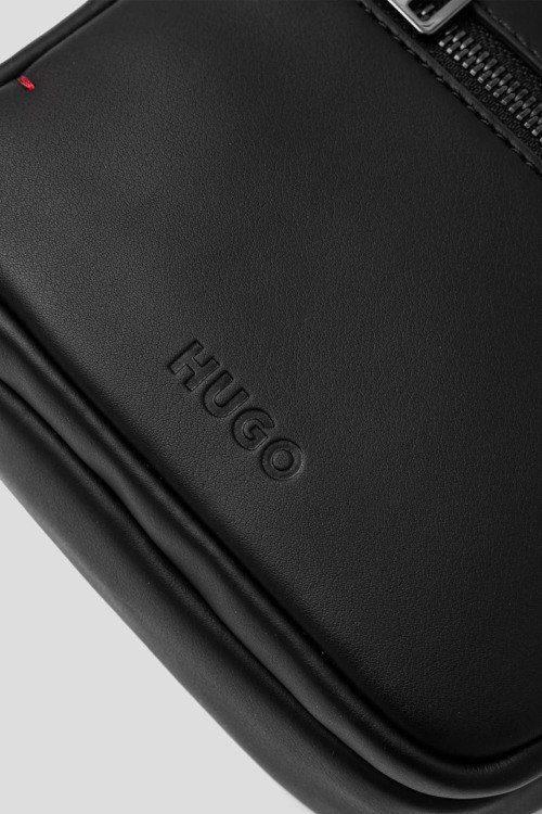 Детали: Мужская черная сумка мессенджер из экокожи от Hugo Boss (Хуго Босс). Модель из гладкой кожи, тиснение логотипа, внешний карман на молнии, застежка-молния, одно отделение, регулируемый плечевой ремень. Размеры: глубина: 6 см, высота: 18 см, ширина у основания: 17 см