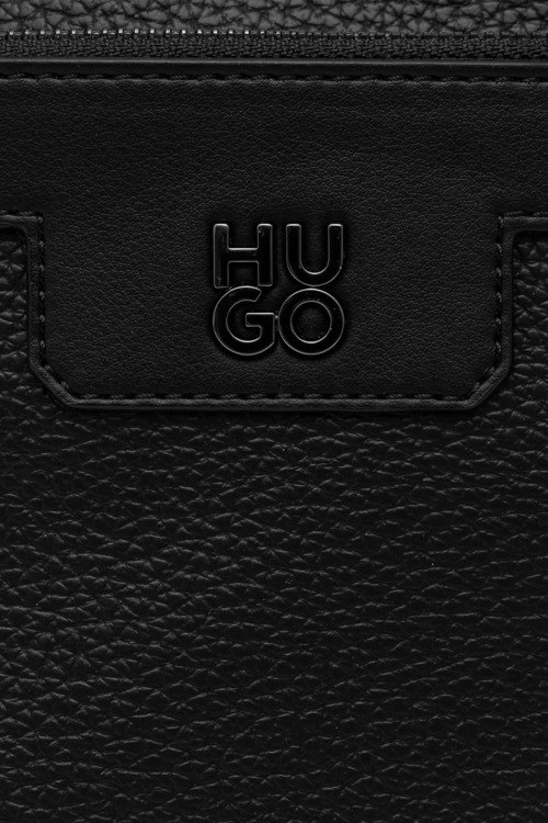 Детали: Мужская черная сумка мессенджер из экокожи Nesh от Hugo Boss (Хуго Босс). Модель из зернистой кожи, нашивка с логотипом, внешний карман на молнии, застежка-молния, одно отделение, регулируемый плечевой ремень. Размеры: глубина: 4 см, ширина у основания: 16 см, высота: 22 см