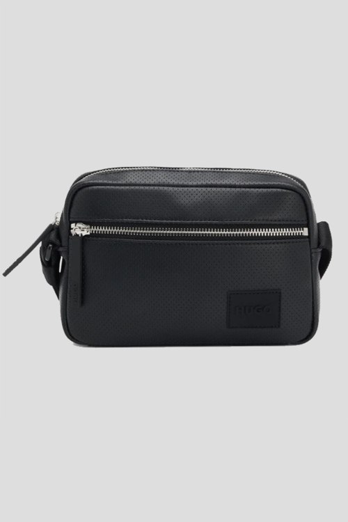 Детали: Мужская черная сумка через плечо из экокожи Ethon 2.0 от Hugo by Hugo Boss (Хуго бай Хуго Босс). Дизайн с перфорацией, внешний карман на молнии, нашивка с логотипом, застежка-молния, одно отделение, регулируемый плечевой ремень. Размеры: глубина: 6.5 см, высота: 13 см, ширина у основания: 21 см