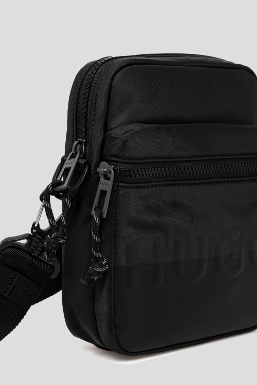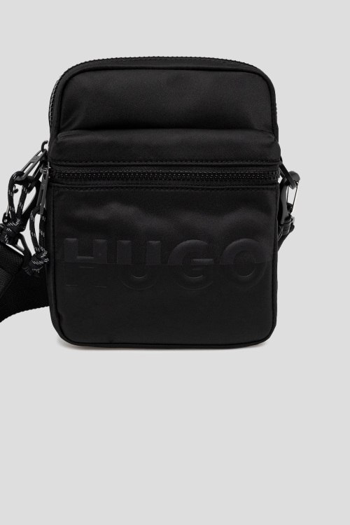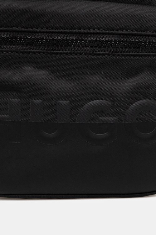 Детали: Мужская черная текстильная сумка мессенджер от Hugo by Hugo Boss (Хуго бай Хуго Босс). Логотип спереди, накладной карман на молнии, застежка-молния, одно отделение, регулируемый плечевой ремень. Размеры: глубина: 5 см, высота: 21 см, ширина у основания: 17 см