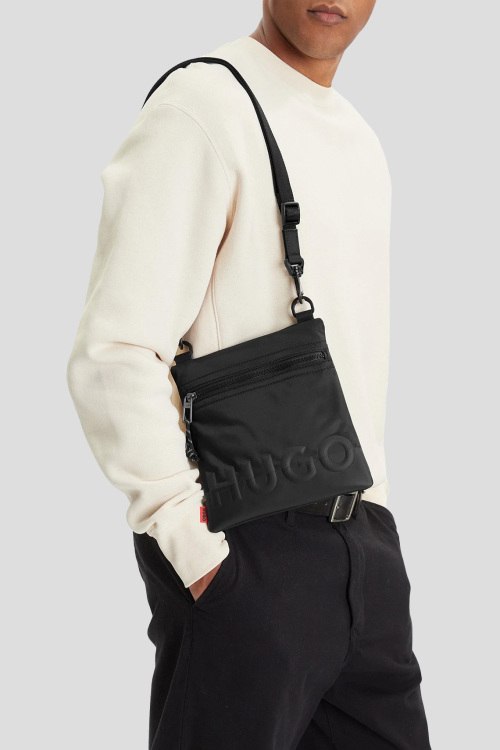 Детали: Мужская черная текстильная сумка мессенджер Nosh от Hugo by Hugo Boss (Хуго бай Хуго Босс). Логотип спереди, внешний карман на молнии, застежка-молния, одно отделение, регулируемый плечевой ремень. Размеры: 21 х 22.5 х 1 см