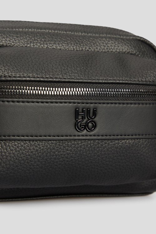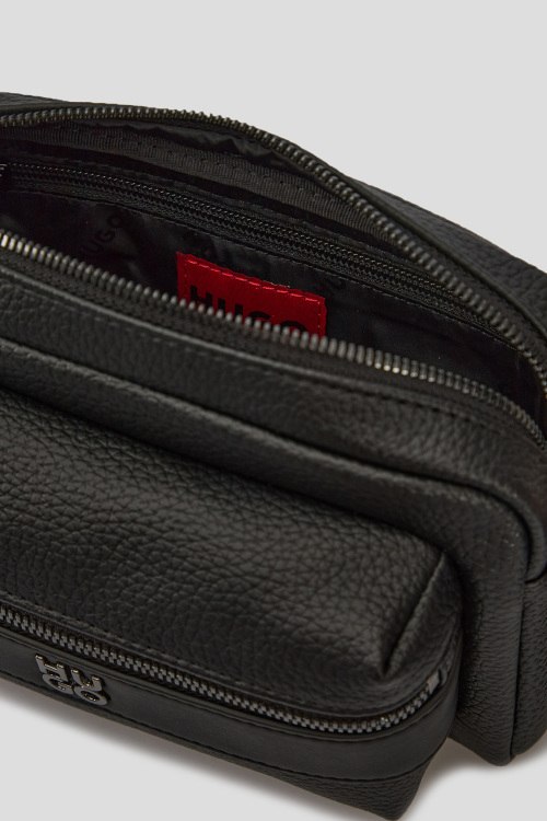 Детали: Мужская черная сумка через плечо из экокожи Nesh от Hugo by Hugo Boss (Хуго бай Хуго Босс). Модель из зернистой кожи, значок логотипа, накладной карман на молнии, застежка-молния, одно отделение, регулируемый плечевой ремень. Размеры: глубина: 3 см, высота: 12 см, ширина у основания: 21 см