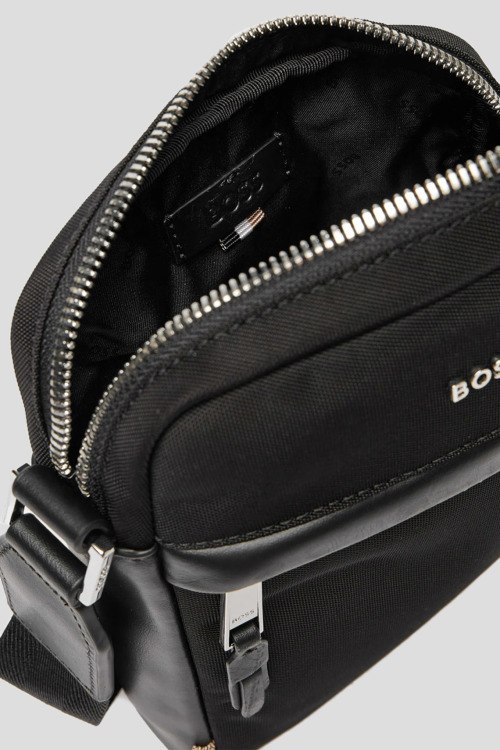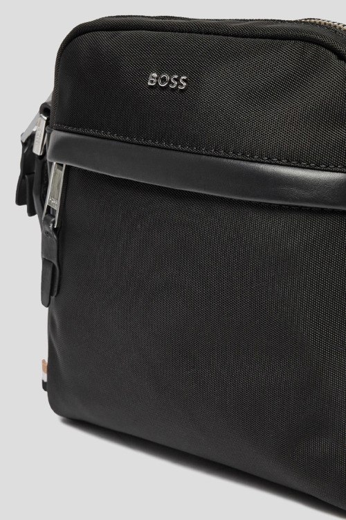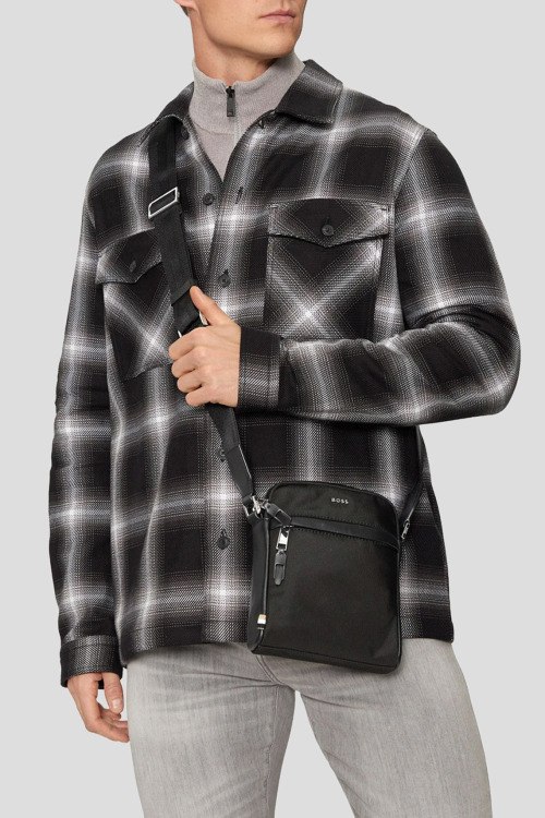 Детали: Мужская черная текстильная сумка мессенджер Highway от Hugo Boss (Хуго Босс). Значок с логотипом, серебристая фурнитура, внешний карман на молнии, застежка-молния, одно отделение, регулируемый плечевой ремень. Размеры: 17 х 22 х 5 см