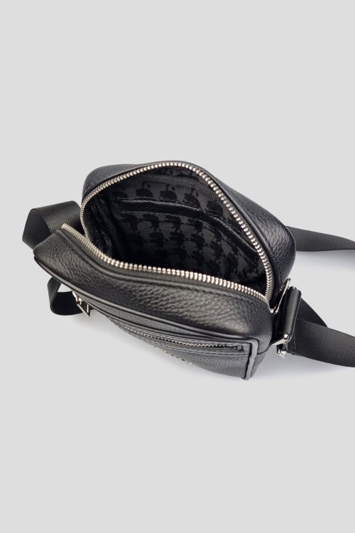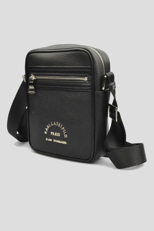 Детали: Мужская черная сумка через плечо из натуральной кожи от Karl Lagerfeld (Карл Лагерфельд). Одно отделение, застежка на молнию, внешние карманы на молнии, регулируемый плечевой ремень, логотип бренда. Размеры: ширина 17 см, высота 22 см, глубина 6 см