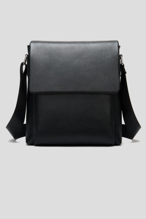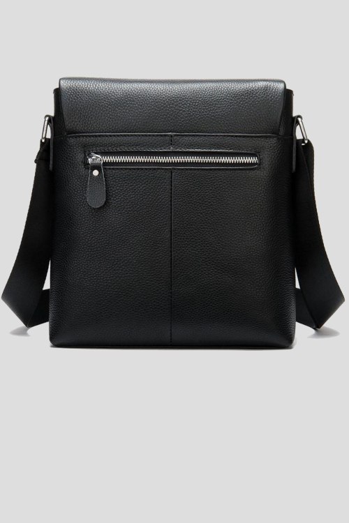 Детали: Мужская черная сумка через плечо из натуральной кожи от RoyalBag (РоялБег). Прямоугольная форма, одно основное отделение на молнии с клапаном, внутренние карманы, внешний карман на молнии, регулируемый плечевой ремень, металлическая фурнитура
