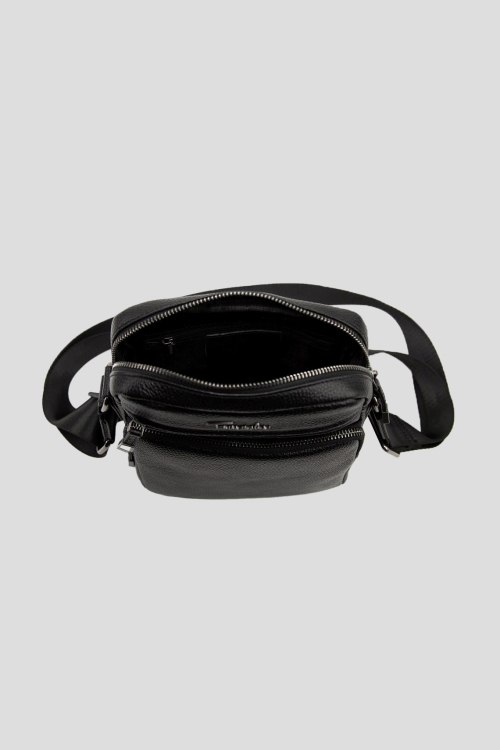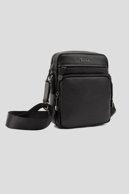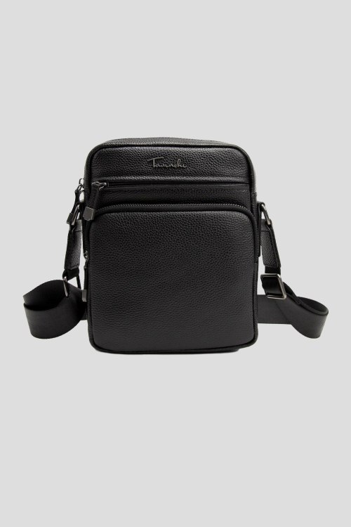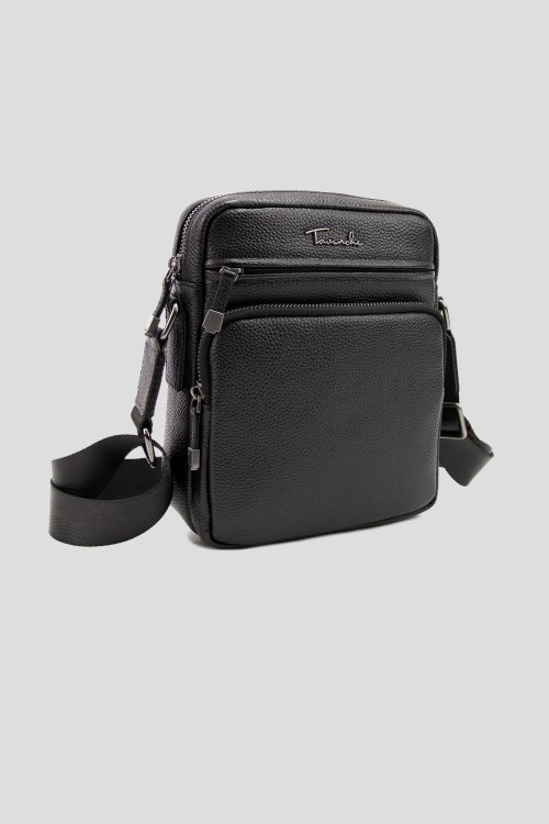 Детали: Мужская черная сумка-мессенджер из натуральной кожи от Tavinchi (Тавинчи). Одно отделение, застежка на молнию, внешние три кармана на молнии, два спереди и один сзади, текстильный плечевой ремень регулируется по длине. Размер: 19 x 23 x 6 см.