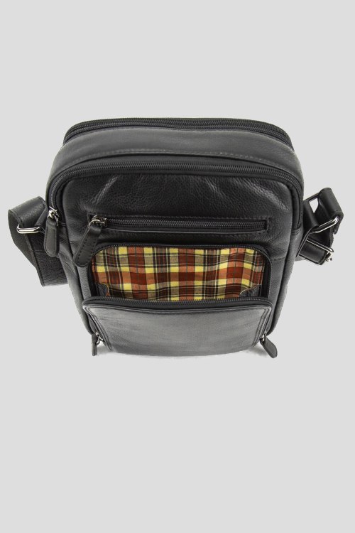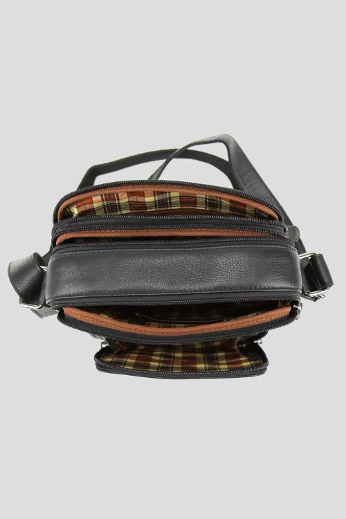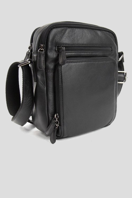 Детали: Мужская черная кожаная сумка-мессенджер от Tavinchi (Тавинчи). Два отделения, застежка на молнию, внешние карманы на молнии, регулируемый плечевой ремень. Измерения: 20 x 24,5 x 10 см