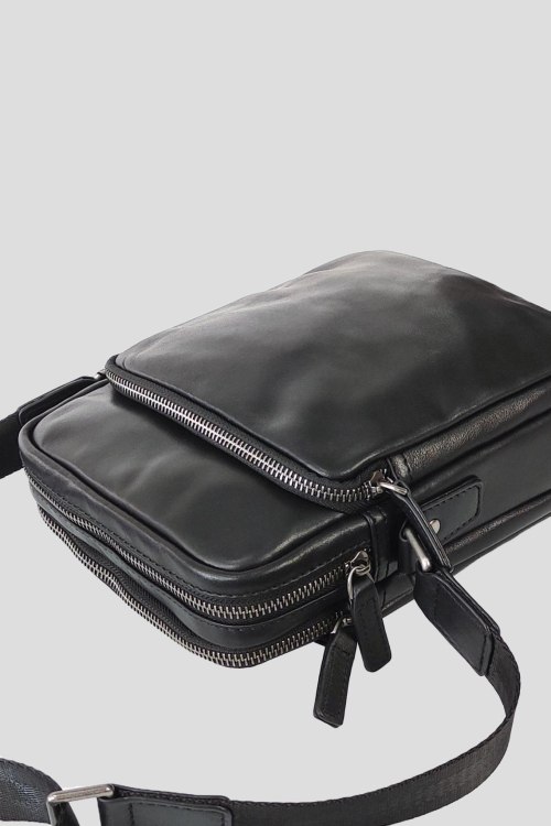 Детали: Мужская черная сумка-мессенджер из натуральной кожи от Tiding Bag (Тайдинг Бег). Два основных отделений закрывающихся на молнию, внутри каждого отделения имеется по одному карману для разных мелочей, внутри имеется один внутренний карман размером 12х13 см закрывается на молнию, другой карман открытого типа имеет размер 15х16 см расположен в другом главном отделении мессенджера. внешний карман на молнии размером 16х18 см. С задней части карман на молнии, размером 12,5х17 см. Плечевой ремень регулируется по длине, в диапазоне 77-130 см. Размер: 19 х 24 х 9 см