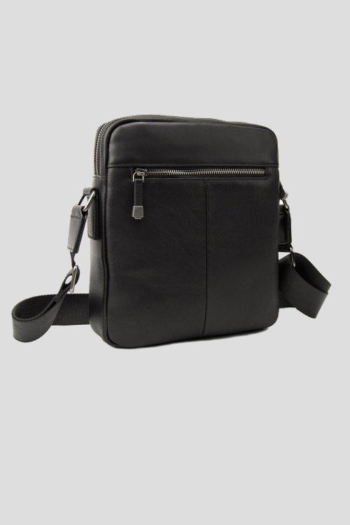 Детали: Мужская черная сумка-мессенджер из натуральной кожи от Tiding Bag (Тайдинг Бег). Одно основное отделение закрывается на молнию, внешний карман на молнии, плечевой ремень. Размер: 18 х 24 х 5 см